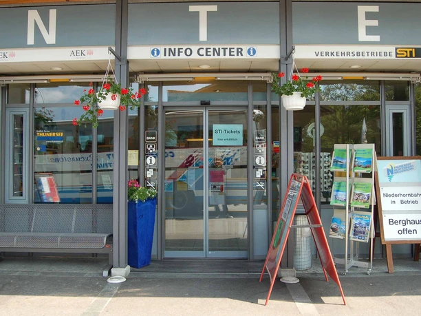 The staff at the Gunten Info-Center will advise you in German, French and English. Here you will find information on the diverse excursions around Lake Thun and in the Bernese Oberland. You will also find attractive gifts, hiking maps, tickets for bus, ship and train, as well as vouchers and special offers. The Info-Center is at the centre of the village of Gunten on the lakeside road between Thun and Interlaken. There are parking spaces and a bus stop directly in front of the centre, just a few metres from Lake Thun.