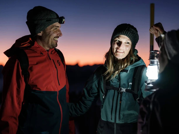 - Winter clothing (ideally winter jacket, snow trousers and gloves) and good shoes (high, sturdy shoes with a good profile, ideally waterproof) must be worn; a headlamp and ski helmet are highly recommended