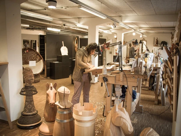 The School of Woodcarving Brienz has offered foundational training in a variety of crafts since 1884. In addition to traditional sculpture, for several years now, students at the college have been able to train in other crafts including coopering, basket weaving and wickerwork, turning and white coopering. Students on the four-year sculpture programme learn techniques for cutting humans, animals and ornaments. You’ll be amazed by the wealth of ideas and variety of objects on display! Two to four students are stationed in the exhibition room during opening hours, giving you the chance to watch them as they work.