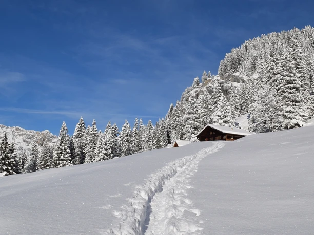 Note: The Griesalp is located in an avalanche-prone area. The hazard situation must therefore be taken into account. The snowshoe route can be closed at short notice. Also note that private traffic in winter is only possible up to below the Griesschlucht. The ascent via the road must be planned in the route!