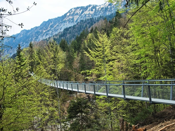 The third stage is the most demanding section of the Panorama Circular Route. However, the hike initially leads gently from Interlaken to Därligen. It goes uphill to Meielisalp above Leissigen. Once at the top, the view of Lake Thun is breathtaking. Treat yourself to a break and recharge for another highlight of the hike. The 142-meter-long Leissigen Panorama Bridge awaits you. At almost 60 meters high, it crosses the Spissibach. The bridge impresses with its simplicity and stability. Crossing it is an experience for young and old. Via Krattigen, the path descends to Faulensee. From here, the beautiful lakeside path leads you directly to Spiez, in the most beautiful bay in Europe, with a historic castle and lush vineyards.