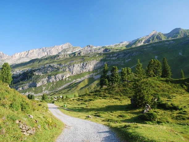 This route runs wholly or partly on marked paths of the mountain hiking trail category. In the ''Sätteli'' area, the trail leads over a steep descending section partly covered with loose stones. Surefootedness and good footwear are absolutely necessary. Hiking poles can be helpful!