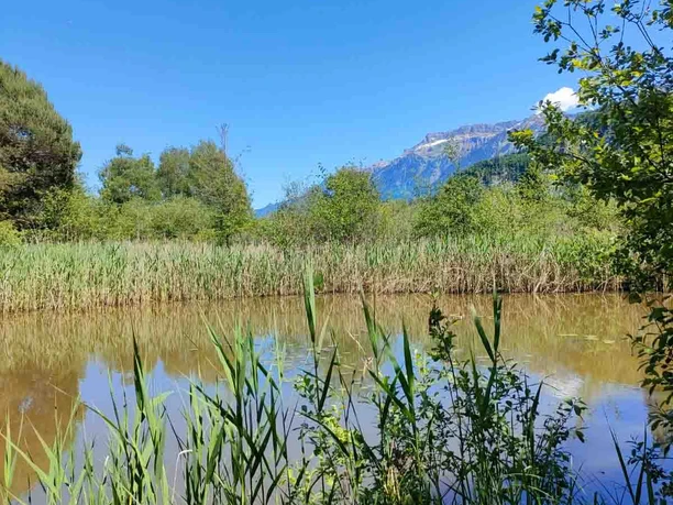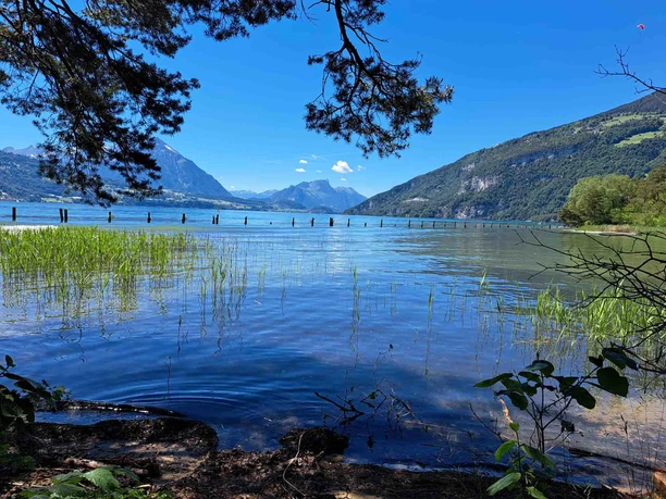 Hintergrund: Die St. Beatus-Höhlen erstrecken sich im Innern des Niederhornmassivs. Rund 14 Kilometer sind bislang erforscht. Gemäss einer Legende dienten die Höhlen im 6. Jahrhundert dem heiligen St. Beatus bis zu seinem Tod als Unterschlupf, nachdem er den dort lebenden Drachen besiegt hatte. Das Naturschutzgebiet Weissenau am oberen Ende des Thunersees ist Lebensraum für zahlreiche Pflanzen und Tiere. Auen, Flachmoore und das Seeufer bieten Vögeln Nahrungs- und Brutplätze, zudem befindet sich hier das Überwinterungsquartier für viele Vogelarten – zur Vogelbeobachtung ist das Gebiet daher bestens geeignet.