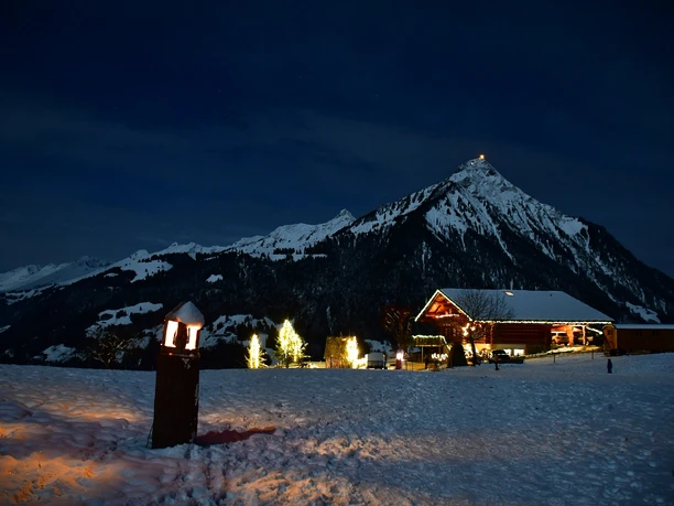 Der Monat Dezember ist fürs Wandern ein besonderer Monat. Im Mittelland ist es grau und kalt, was einen für eine Wanderung wenig anspornt. In den Touristenorten liegt meist noch nicht viel Schnee und die Bergbahnen starten oft erst kurz vor Weihnachten in die Wintersaison. Eine etwas andere Wanderung, wenn auch nur eine kurze, ist der Wiehnachtswäg in Aeschi bei Spiez. Der rund zwei Kilometer lange Rundgang befindet sich zwischen Aeschi und Aeschiried. Von der Bushaltestelle Wachthubel folgt man der Strasse Richtung Aeschiried. In der grossen Kurve rechts beginnt der markierte Wiehnachtswäg. Entlang der Route finden sich bei kleinen Scheunen sechs wunderbare Motive, die die Weihnachtsgeschichte erzählen. Bei Sewenegg lädt das Wiehnachtswäg-Beizli zu einer Rast ein. Der Rundgang eignet sich besonders in der Nacht für einen schönen Spaziergang, in einer speziellen Winteratmosphäre mit Kerzenschein und Sternenhimmel. Um den Rundweg zu begehen, benötigen Sie – je nachdem, wie lange Sie bei den einzelnen Bildern verweilen – ungefähr eine Stunde. Wir empfehlen Ihnen, bei Dunkelheit eine Taschenlampe mitzunehmen.