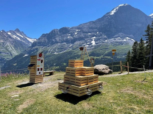 Auf dem Weg durch die traumhafte Szenerie ist die imposante Kulisse von Eiger, Schreck- und Wetterhorn immer mit dabei. Sein krönendes und leckeres Finale findet der Öpfelchüechliweg beim Bergrestaurant Brandegg. Hier werden die besten Öpfelchüechli der Welt zubereitet.