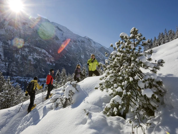Besonders schön ist dieser lawinensichere Trail nach einem Schneefall. Der Aufstieg kann zeitweise apere Stellen haben. Bitte erkundigen Sie sich im Zweifelsfall bei Kandersteg Tourismus über den Zustand des Trails!