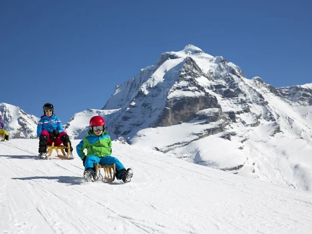 Das Schilthorngebiet ist für Schneewanderungen und Schlittelspass wie gemacht. Schlittelfans finden ihre Freude auf dem Schlittelweg Apollo. Der breite, sonnige Weg führt von der Station Schiltgrat über Schiltalp und Gimmeln bis zurück nach Mürren.