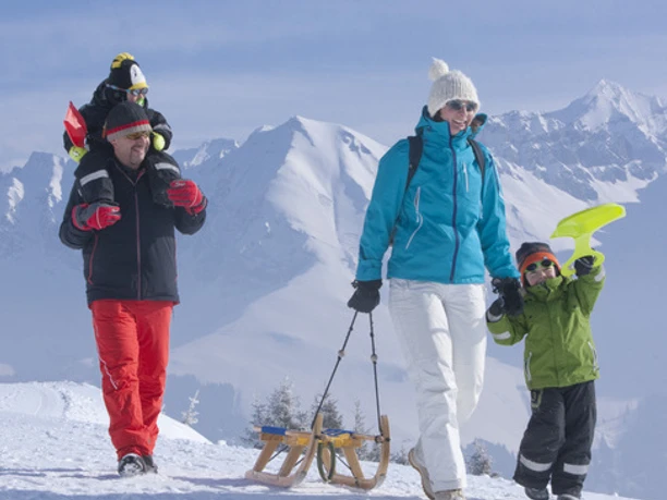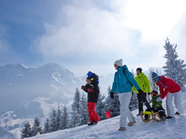 Auf der TschentenAlp mit dem Schlitten den Berg runtersausen – ein Erlebnis, das unbegrenzten Schlittelspass für Gross und Klein garantiert.