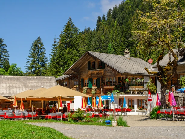 Ab Suld bleibt man am besten zuerst auf der linken Seite des Sulbachs. Zuerst durch Wald und über Lichtungen, dann am Ufer des Baches schlängelt sich der gut ausgebaute Weg durch das Suldtal abwärts. Nach etwa eineinhalb Kilometern führt eine Brücke ans rechte Ufer, und wenig später steht am Wegrand ein liebevoll eingerichteter Picknick- und Grillplatz. Bald darauf teilt sich der Weg. Nach oben geht es gemütlich und direkt zurück nach Aeschiried. Weiter dem Bach folgt die hier empfohlene, wildere und etwas längere Route. Der Pfad wechselt bald das Ufer und folgt mal etwas in der Höhe, mal näher am Wasser und ab und zu auch auf einem wackeligen Holzsteg der Suld. Auf dem schmalen Weg braucht es nochmals etwas Trittsicherheit.