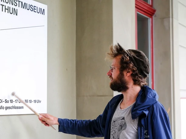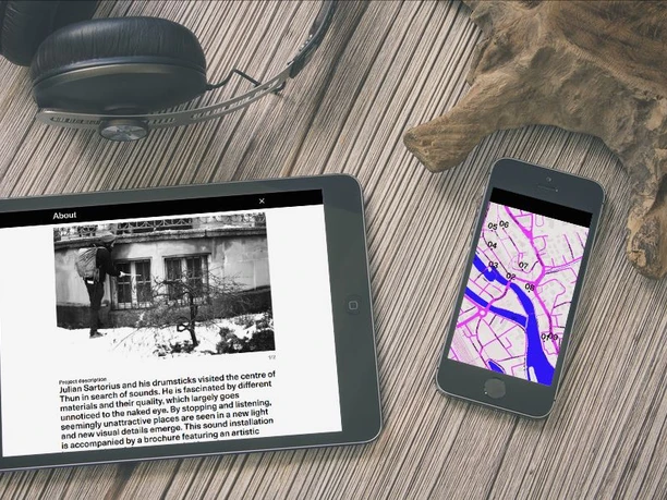 Für den mobilen Cityguide ThunThunThun hat der Perkussionist Julian Sartorius ein Line-Up aus seiner Heimatstadt generiert. Es ist ein Line-Up für einen Klangspaziergang der besonderen Art, denn sonst ist der bekannte Künstler weltweit auf Konzerten zu sehen, u.a. zusammen mit Künstlern wie Sophie Hunger, Matthew Herbert, Sylvie Courvoisier. Eine Stunde Zeit und offene Ohren, das brauchen Besucher auf der zugehörigen Webseite thunthunthun.ch. Du startest beim Kunstmuseum Thun, laufst dem GPS-Signalpunkt folgend die Stationen auf der mobilen Karte ab und wirst von neun Tracks begleitet. Diese schalten sich frei, sobald man am richtigen Fleck steht. Dann erklingen die Drumsticks von Julian Sartorius, welche Fensterrahmen, Brunnen, Gullys und Geländer getroffen haben, um eine Stadt aus Klängen zu erschaffen.