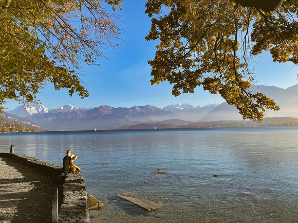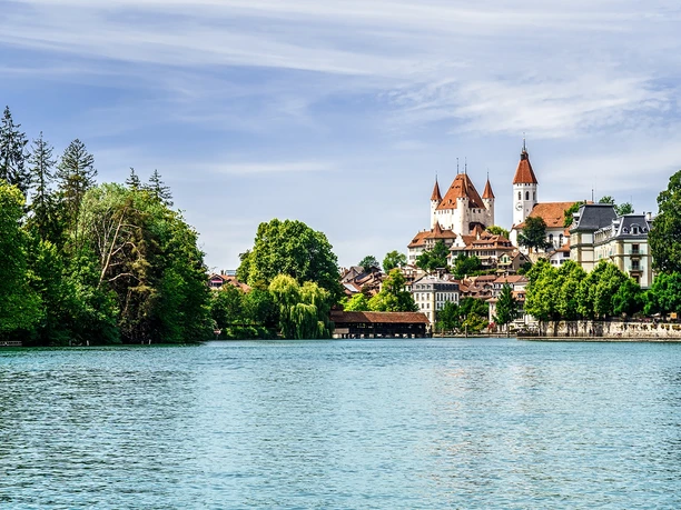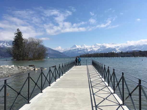 Hinreise: mit der Bahn nach Thun Bahnhof. Die Route startet direkt auf dem Bahnhofplatz Richtung See dem Schifffahrtskanal entlang.