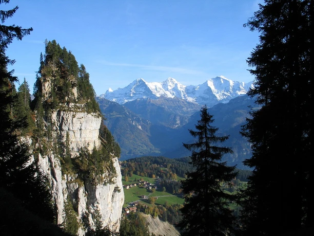Ein kurzer, steiler Aufstieg durch den Spirenwald führt hoch zu eindrücklichen Felswänden über dem Dorf Beatenberg. Mehr oder weniger flach führt ein schmaler Pfad den Felsen entlang weiter Richtung Bire. Auf diesem Wegabschnitt blühen in Felsspalten und Nischen erste Aurikel. Wer möchte, steigt auf einer steilen, bei Nässe rutschigen Holztreppe auf diesen aus dem Wald ragenden Felszacken hoch.
