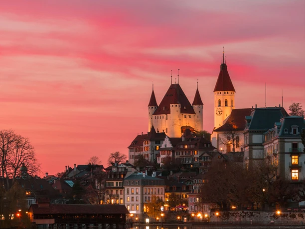 Depuis le 12e siècle, le château médiéval de Thoune est le majestueux symbole de la ville de Thoune et indissociable de cette dernière. Les quatre tours blanches surplombant la colline sont visibles de loin. La vue sur le panorama alpin, le lac de Thoune et la vieille ville de Thoune valent le détour.