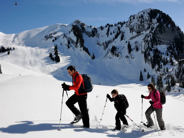 Des raquettes et des bâtons peuvent être loués à la station intermédiaire du téléphérique du Stockhorn.