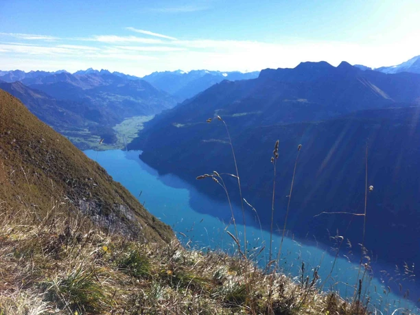 Ausgangspunkt der Wanderung ist die Lombachalp oberhalb von Habkern, eine Moorlandschaft. Der Boden ist daher nach Regenfällen oft matschig – idealerweise startet man nach einer längeren Trockenperiode. Der Bergwanderweg führt steil bergauf, sodass man rasch an Höhe gewinnt und der Grat immer näher rückt. Wenn man dort angekommen ist, öffnet sich eine beeindruckende Szenerie: Vor einem erheben sich die Berner Alpen, tief unten schimmert der Brienzersee. Nun ist es nicht mehr weit bis zum höchsten Punkt der Wanderung, dem Augstmatthorn. Ganz unproblematisch ist der Weg nicht: Zwar ist der Grat breit, doch nicht jede Person fühlt sich hier wohl – bringe dich also nicht selbst in Gefahr und erkenne deine Grenzen. Bergerfahrung und die passende Ausrüstung sind also ein Muss.
