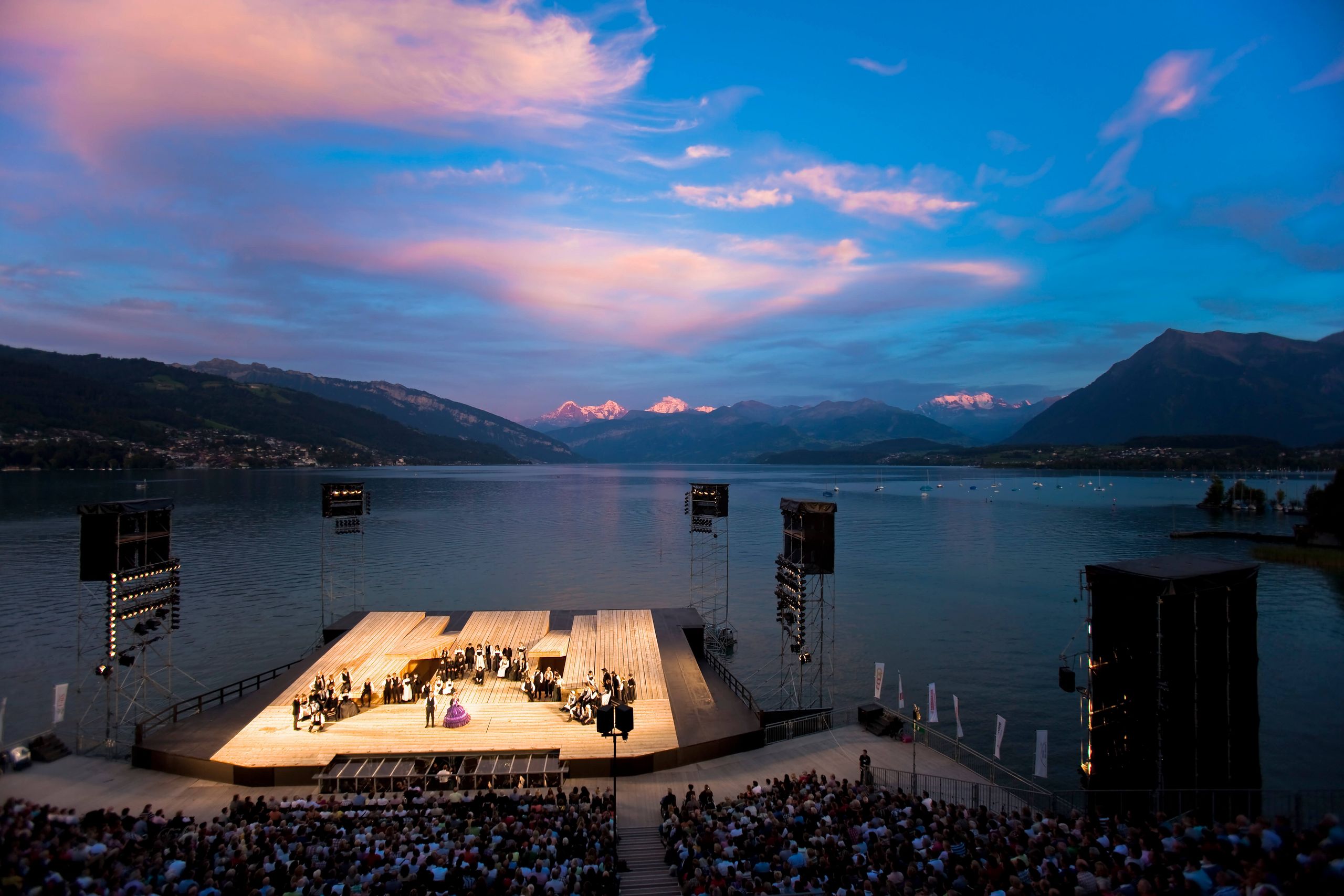 Geniesse das Freilichtmusical vor der Kulisse von Eiger, Mönch und Jungfrau in unvergesslicher Atmosphäre. Jeden Sommer präsentieren die Thunerseespiele vor der eindrücklichen Bergwelt des Berner Oberlandes ein Freilichtmusical in Weltformat. Die einzigartige Seebühne direkt am Thunersee fasziniert und verzaubert. Tauche ein in die Welt der der Musicals und erlebe mitreissende und emotionale Geschichten am Thunersee.